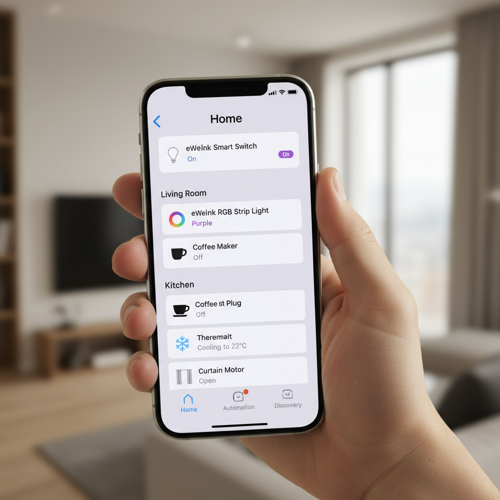 Start Automating and Controlling: With your eWeLink devices now visible in the Home app, you can control them with a tap, use Siri voice commands (e.g., "Hey Siri, turn on the living room light"), and integrate them into powerful HomeKit automations with other accessories.